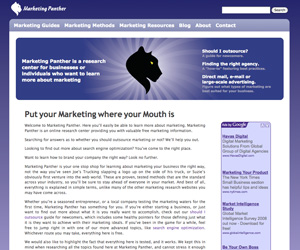 Launched in April 2008, MarketingPanther.com was the first site that Jeff built in WordPress. Marketing Panther is the brain of Jeff Pelletier with regards to marketing dumped into a web site. Jeff served in a marketing department for 3 years as a Web Marketing Manager, and this web site is the culmination of the knowledge gained while in this position. There’s a wealth of search engine optimization knowledge, tutorials, and resources. Jeff has worked with 2 separate search engine optimization firms, and all the industry standards and best practices are shared on MarketingPanther.com. There’s also a blog Jeff hasn’t posted to for a while, well, because he’s been working on this site. If you’ve got a question regarding search engine optimization, or about any other new media form or traditional marketing method, check out MarketingPanther.com.